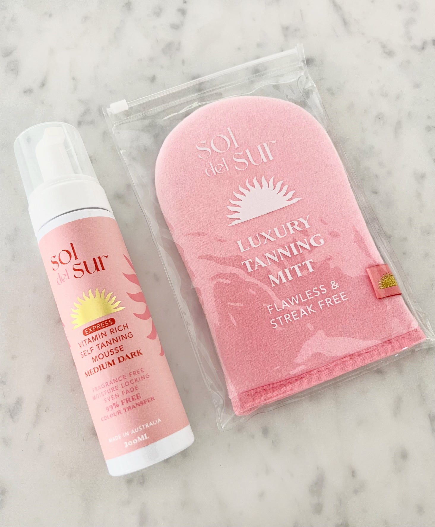 For an extra dark olive tan, enjoy your new fast drying, unscented sunless tan, by pumping the mousse onto our Luxury Tanning Mitt and rubbing into skin, sparingly over hands, elbows, ankles and feet.
